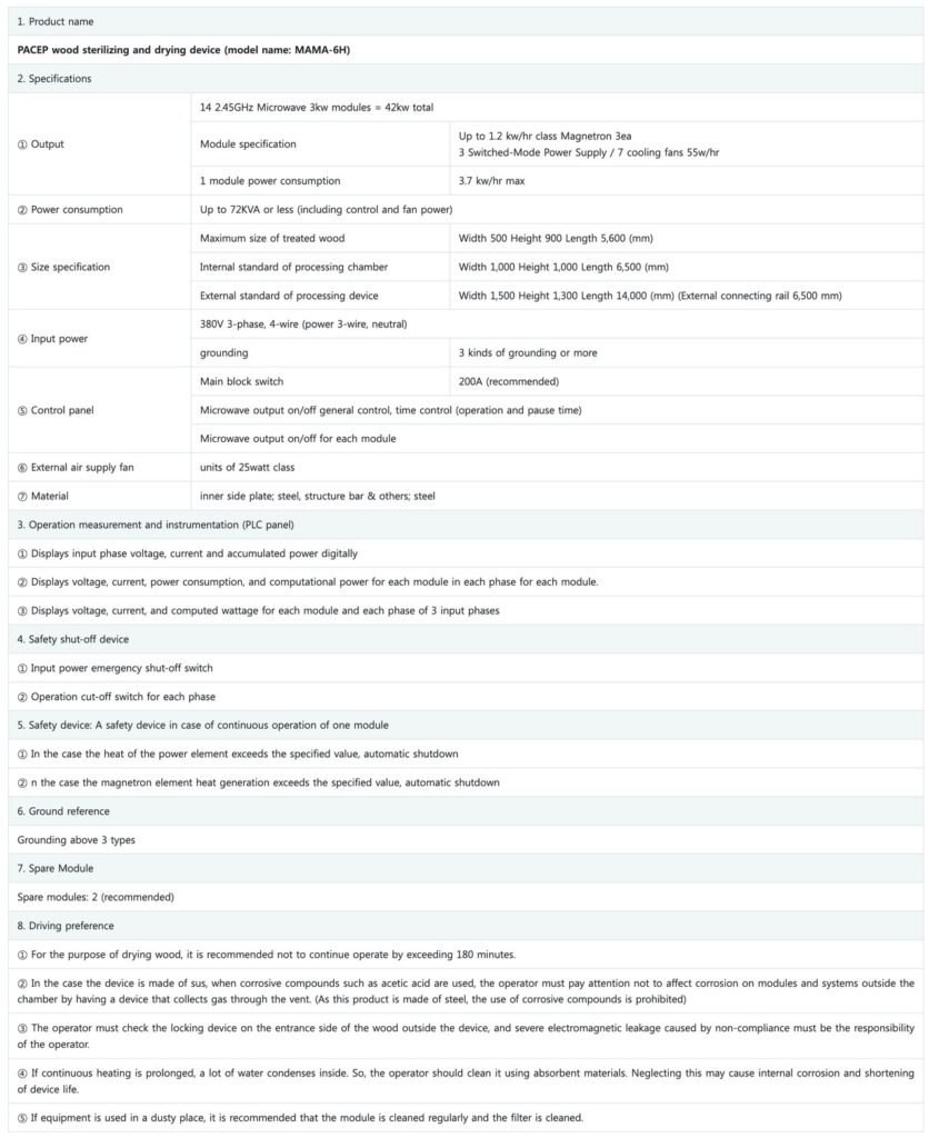 This technology works by attaching a module that generates microwaves to the chamber, and generates heat from the inside of the wood by evenly radiating microwaves to the wood through the module, allowing the wood to dry and evenly shrink in a short time, dramatically reducing splitting and warping, and thus dry high quality wood.